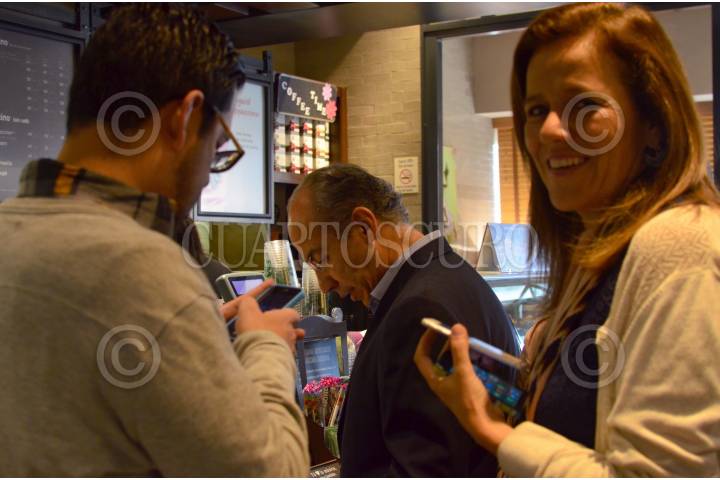 MÉXICO, D.F., 07JUNIO2015.- El ex presidente Felipe Calderón, acompañado por su esposa Margarita Zavala, hizo una parada en un café de la zona después de acudir a la casilla correspondiente a votar ubicada en la colonia Las Águilas, en la delegación Álvaro Obregón. Al acercarse al mostrador pidió un "doble alto capuchino", posteriormente se retiró de la cafetería. FOTO: MARÍA JOSÉ MARTÍNEZ /CUARTOSCURO.COM
