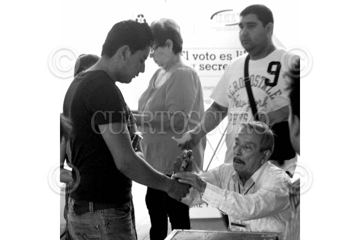 TUXTLA GUTIÉRREZ, CHIAPAS, 19JULIO2015.- Con incidentes, como enfrentamientos, la toma de oficinas del Instituto electoral local en dos municipios y el robo de un par de casillas, para elegir a 122 presidentes municipales y 41 diputados para el Congreso. En la imagen, Manuel Velasco, gobernador del estado realizando su voto FOTO: JACOB GARCIA /CUARTOSCURO.COM