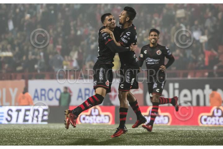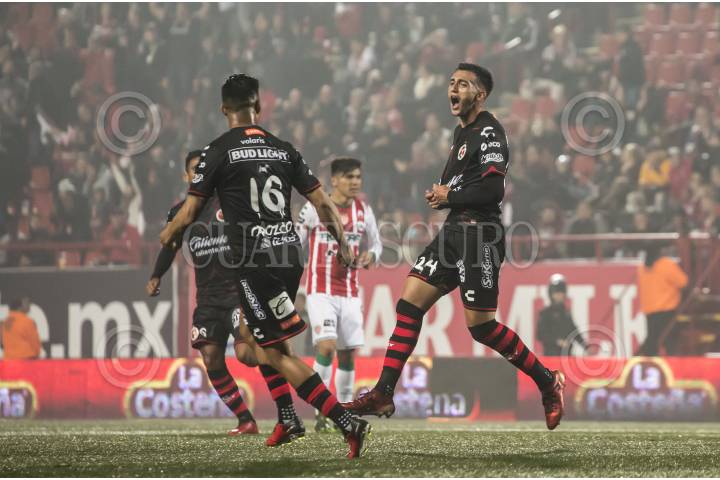 TIJUANA BAJA CALIFORNIA, 12ENERO2018.- Luis Chávez festeja el gol anotado durante el partido entre Xoloitzcuintles de Tijuana contra Rayos de Necaxa realizado en el estadio Caliente, como parte de la jornada 2 del Torneo de Clausura 2018 de la Liga MX. FOTO: CUARTOSCURO.COM