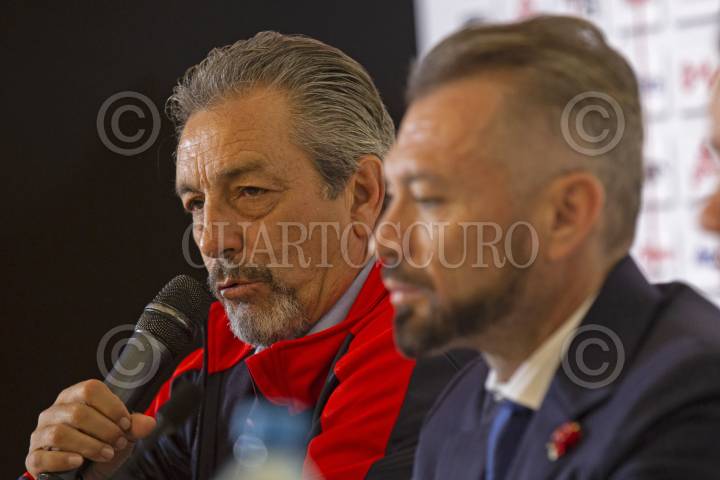 ZAPOPAN, JALISCO, 19JUNIO2019.- José Luis Higuera CEO del Club Guadalajara y Tomas Boy Director Técnico del Club Guadalajara, presentaron este medio día al jugador proveniente del Club América Oribe Peralta quien será el nuevo refuerzo del Club Chivas de Guadalajara, esto en las instalaciones del Estadio Akron. FOTO: FERNANDO CARRANZA GARCIA / CUARTOSCURO.COM