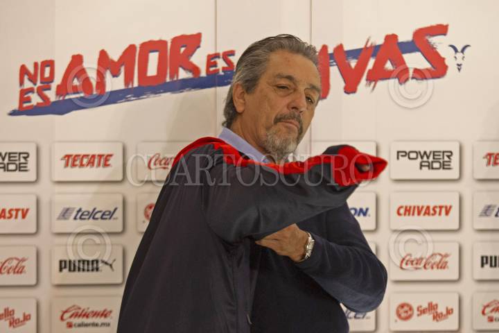 ZAPOPAN, JALISCO. 13DICIEMBRE2016.- Jorge Vergara, dueño del Club Guadalajara; Matías Almeida, Director Técnico; José Luis Higuera, CEO del Grupo Omnilife, encabezaron la presentación del nuevo refuerzo de Chivas, Rodolfo Pizarro, jugador proveniente del Club Pachuca. El evento se llevó a cabo en las instalaciones del estadio Chivas. FOTO: FERNANDO CARRANZA GARCIA /CUARTOSCURO.COM