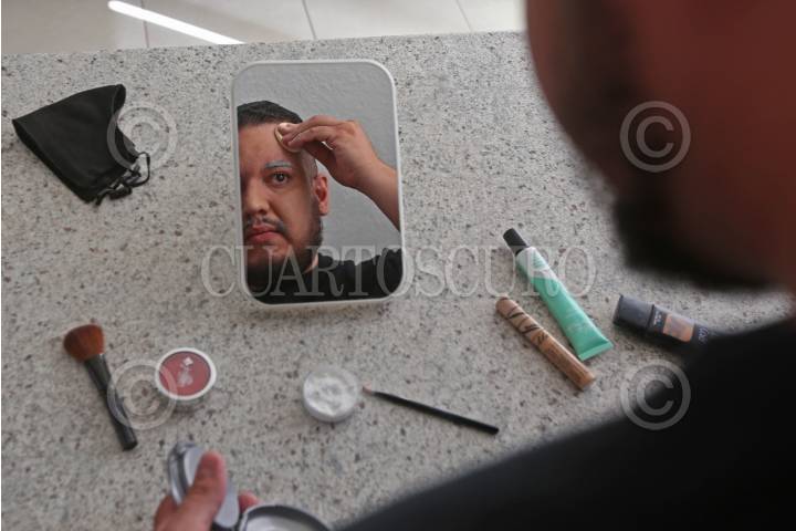 José mientras se maquilla para realizar una demostración de lo que preparo esta navidad para los niños Jaliscienses.