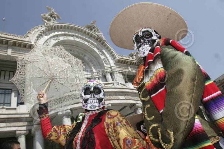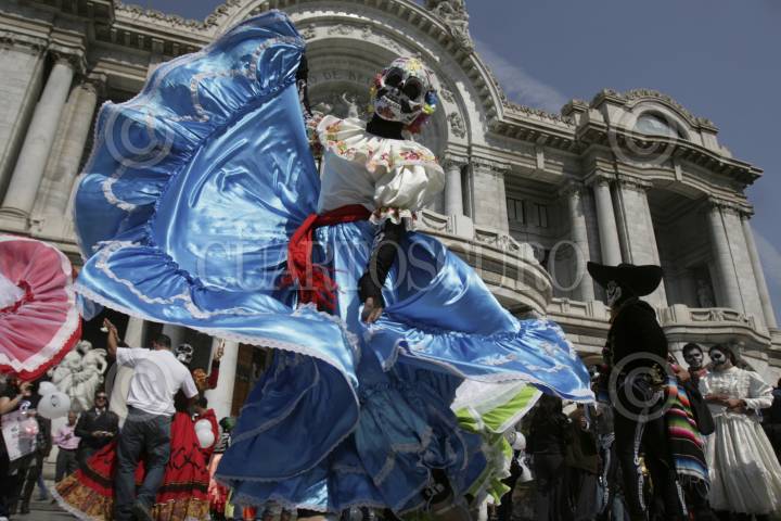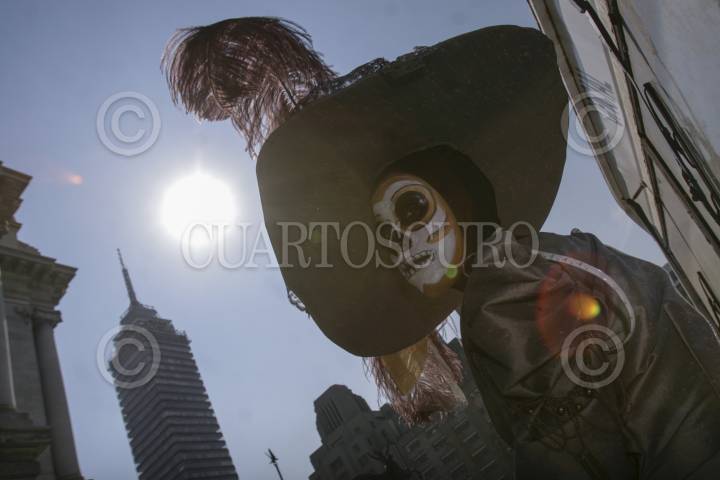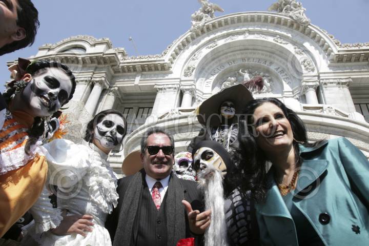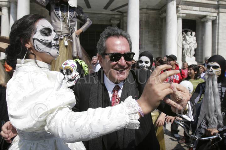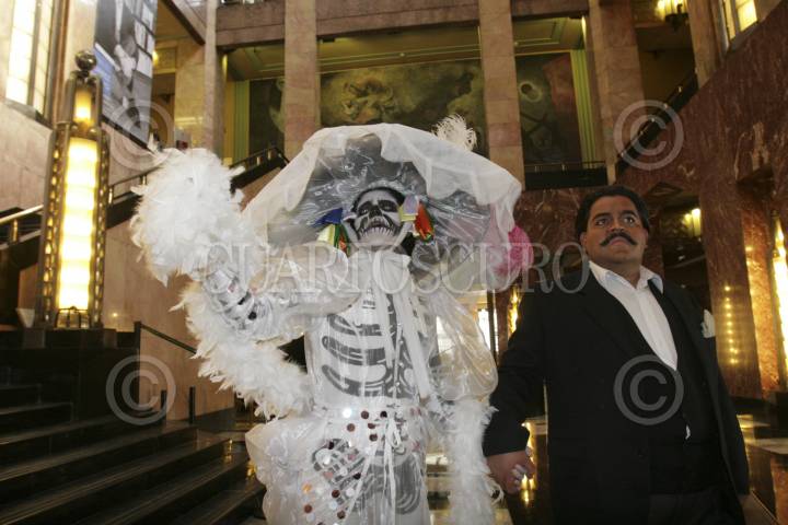 MÉXICO, D.F., 17ENERO2013.- Carlos Lozano de la Torre, gobernador de Aguascalientes, baila con una Catrina al final del anuncio del Homenaje Nacional que CONACULTA y el Gobierno de Aguascalientes realizarán a José Guadalupe Posada a partir del 20 de enero en la ciudad de Aguascalientes, lugar de nacimiento del creador de "La catrina". FOTO: JUAN PABLO ZAMORA /CUARTOSCURO.COM