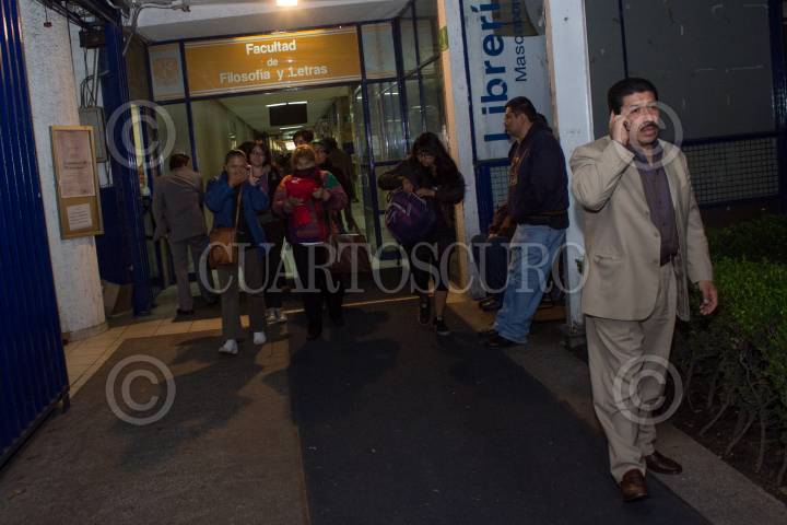 MEXICO, D.F., 21OCTUBRE2014.- Autoridades de la Facultad de Filosofía y Letras colocaron sellos en aulas y puertas y posteriormente entregaron las instalaciones del plantel a los alumnos para unirse al paro de 48 horas convocado en apoyo a las manifestaciones que exigen la aparición con vida de los 43 normalistas de Ayotzinapa, secuestrados en Iguala el pasado 26 de septiembre. FOTO: DAVID POLO /CUARTOSCURO.COM