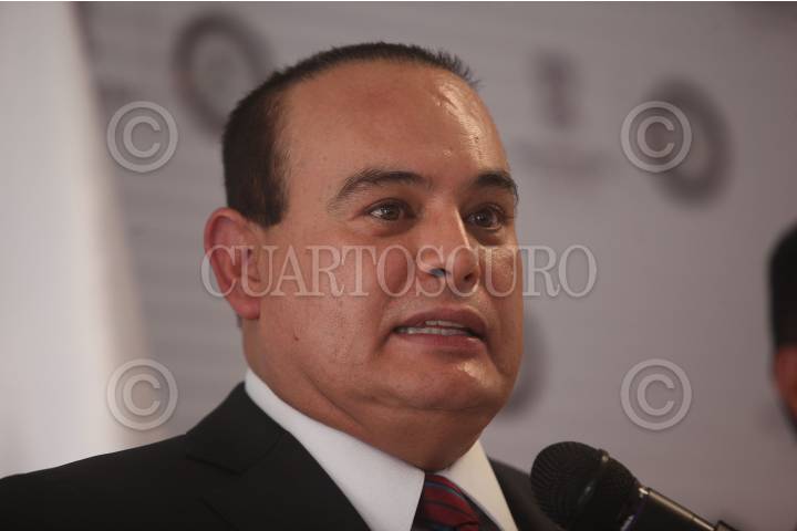 MORELIA, MICHOACÁN, 24JULIO2019.- José Martín Godoy Castro, secretario de Seguridad Pública de Michoacán; Germán Ortega, director del Seguro Popular en la entidad, así como dos pilotos murieron luego de que el helicóptero en el que viajaban se estrellará en la zona serrana de Villa Madero, así lo confirmó el gobernador de la entidad Silvano Aureoles Conejo. La imagen de archivo del 10 de junio de 2015 cuando Godoy Castro se desempeñaba como procurador de la entidad michoacana. FOTO: ARCHIVO/ ALAN ORTEGA /CUARTOSCURO.COM