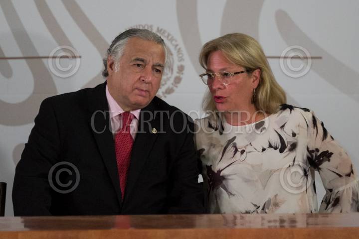 CIUDAD DE MÉXICO, 18FEBRERO2019.- Miguel Torruco Márques, secretario de Turismo, y Josefa González, titular de la Secretaria de Medio Ambiente, durante la conferencia matutina del jefe del ejecutivo donde se firmo el decreto por el cual se aprueba el cierra de la prisión de las Islas Marías, para que esta sea transformada en un centro cultural y de educación ambiental. FOTO: GALO CAÑAS /CUARTOSCURO.COM