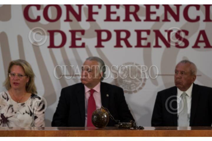CIUDAD DE MÉXICO, 18FEBRERO2019.- Josefa González, titular de la Secretaria de Medio Ambiente; Miguel Torruco Márques, secretario de Turismo, y Francisco Garduño, comisionado del órgano administrativo desconcentrado de Prevención y Reinserción Social, durante la conferencia matutina del jefe del ejecutivo donde se firmo el decreto por el cual se aprueba el cierra de la prisión de las Islas Marías, para que esta sea transformada en un centro cultural y de educación ambiental. FOTO: GALO CAÑAS /CUARTOSCURO.COM