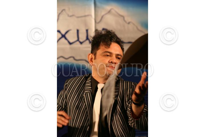 MÉXICO, D.F., 09NOVIEMBRE2010.- Joselo, integrante de la banda mexicana Café Tacuva, durante una conferencia de prensa que ofreció esta agrupación con motivo del lanzamiento de su nuevo documental "Café Tacuva, Seguir Siendo", una película de Ernesto Contreras y José Manuel Cravioto. Esto se realizó en un conocido hotel de la colonia Polanco. FOTO: MISAEL VALTIERRA/CUARTOSCURO.COM