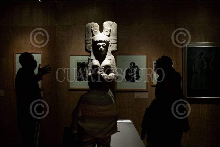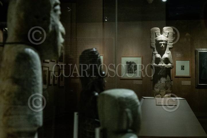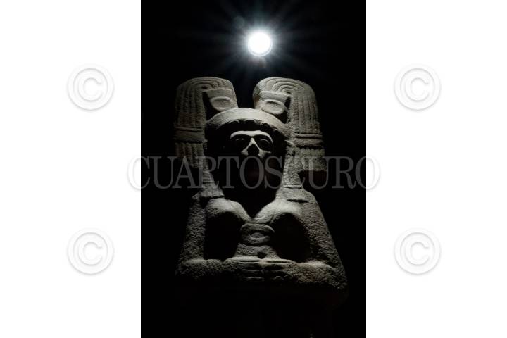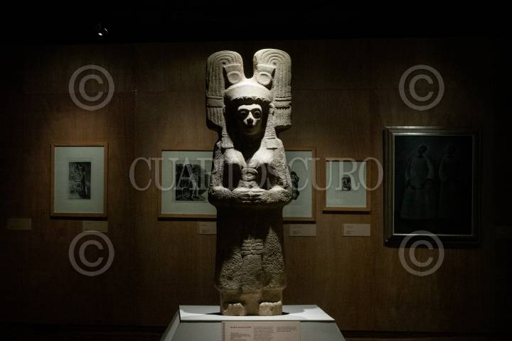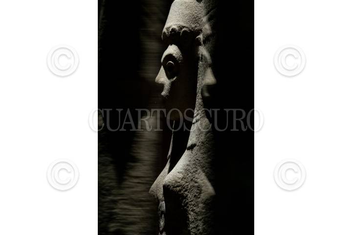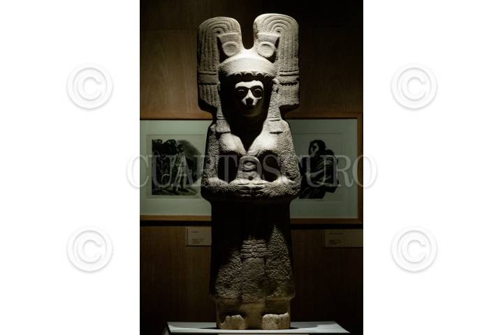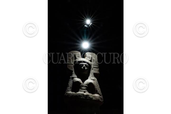 Aspectos de la escultura denominada la "Doncella de Amajac" cuya replica será la que ocupe el lugar en la glorieta de Colón sobre Paseo de la Reforma.