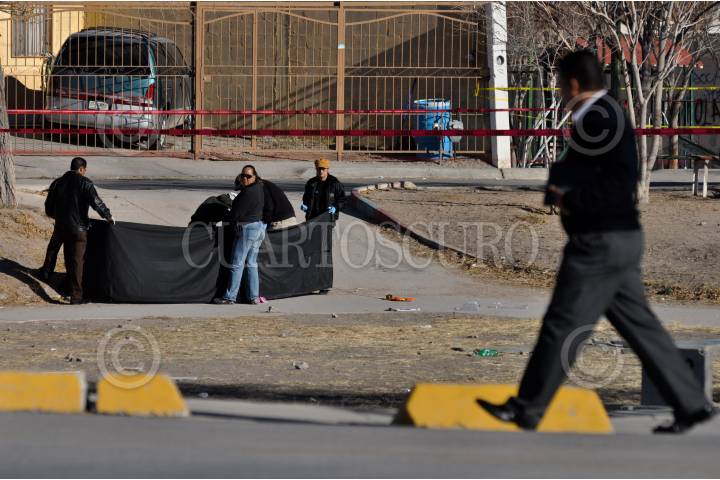 CIUDAD JUÁREZ, CHIHUAHUA, 18ENERO2010.- El cuerpo de una joven de 16 años de edad, fue localizada frente a una primaria este martes por la mañana. Una versión extraoficial menciona que a la jovencita la violaron y estrangularon. El cuerpo estaba envuelto en una cobija frente a una primaria ubicada en el de las calles Arquitecto Ramón Flores Herrera y Arquitecto José Luis Villagrán García del fraccionamiento Horizontes del Sur. Trascendió que los padres de la victimada la buscaban desde anoche cuando se realizó un reporte de su desaparición a las autoridades. FOTO: NACHO RUÍZ/CUARTOSCURO.COM