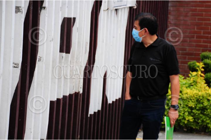 Un hombre intenta ingresar a las instalaciones del CECyT 13 "Ricardo Flores Magón", que en recientes horas fue liberado de jóvenes encapuchados.