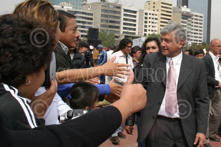 MEXICO, D.F. 21ENERO2005.- Andrés Manuel López Obrador, jefe de gobierno de la ciudad de México, se despide de la gente se asistió a la inauguración de la olimpiada deportiva de la ciudad de México, que se lleva a cabo en el deportivo Villa Olimpica. FOTO: Nelly Salas/CUARTOSCURO.COM