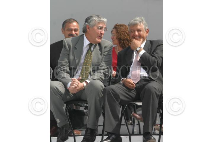 MEXICO, D.F. 21ENERO2005.- Nelson Vargas, titular de la Comisión Nacional del Deporte y Andrés Manuel López Obrador conversan durante la inauguración de la olimpiada deportiva de la ciudad de México, que se lleva a cabo en el deportivo Villa Olimpica. FOTO: Nelly Salas/CUARTOSCURO.COM