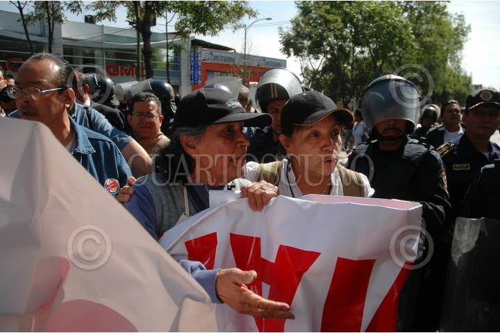 MÉXICO D.F.,13MARZO2008.- Un grupo de aproximadante 100 personas trato de bloquear la vialidad de Insurgentes Sur a la altura de la estación La Joya del Metrobus en protesta por la construcción y ampliación de la linea 1 del Metrobus que corre de la estación Dr. Galvez hacia El Caminero. FOTO: RODOLFO ANGULO/CUARTOSCURO.COM