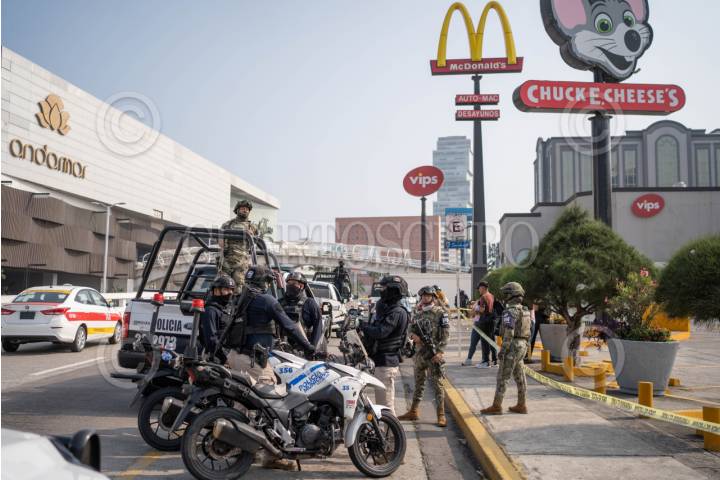 BOCA DEL RIO, VERACRUZ, 06MARZO2024.- La tarde de este miércoles se registró un fuerte operativo por diferentes corporaciones debido a un violento asalto a una joyería al interior del centro comercial "Plaza Las Américas", en el municipio de Boca del Río. El centro comercial fue cerrado y acordonado debido a que diferentes locales recibieron impactos por arma de fuego. El saldo fue un asaltante abatido, una persona detenida y un elemento policiaco lesionado de acuerdo a la información brindada por la SSP. FOTO: VICTORIA RAZO/CUARTOSCURO.COM