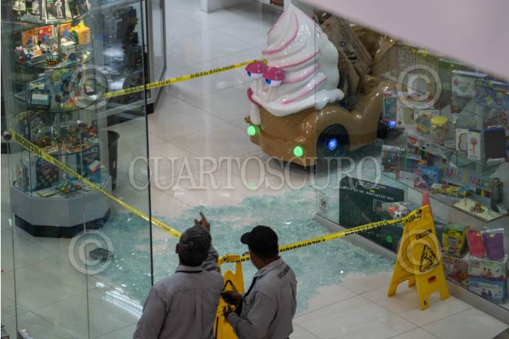 Así luce la joyería que fue robada el pasado 26 de junio en una plaza comercial de Polanco, donde cuatro sujetos con marros, rompieron la vitrina de la tienda y sustrajeron relojes de lujo, dándose a la fuga.