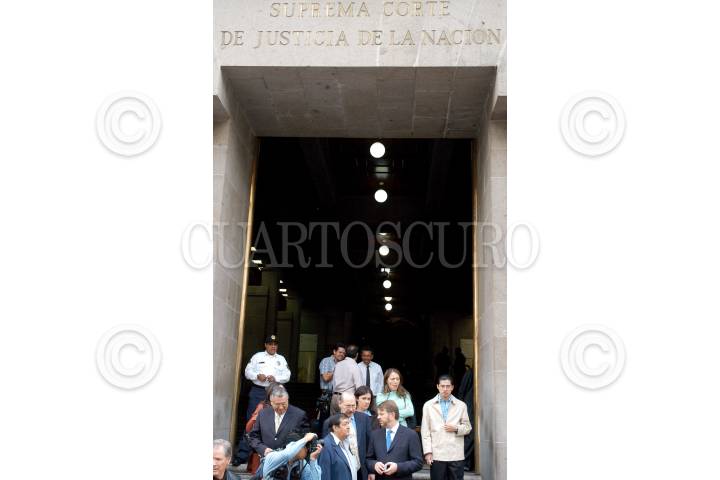 MEXICO, DF 15AGOSTO2005.- El ex canciller Jorge Castañeda sale de la suprema corte de justicia luego de se pospusiera el tratamiento de la resolución que le impide ser candidato independiente a la presidencia de la república. Castañeda fue acompañado entre otros por el cuestionado ex perredista Ramón Sosamontes y el fiscal especial para delitos del pasado, Ignacio Carrillo Prieto. FOTO: Miguel Dimayuga/CUARTOSCURO.COM