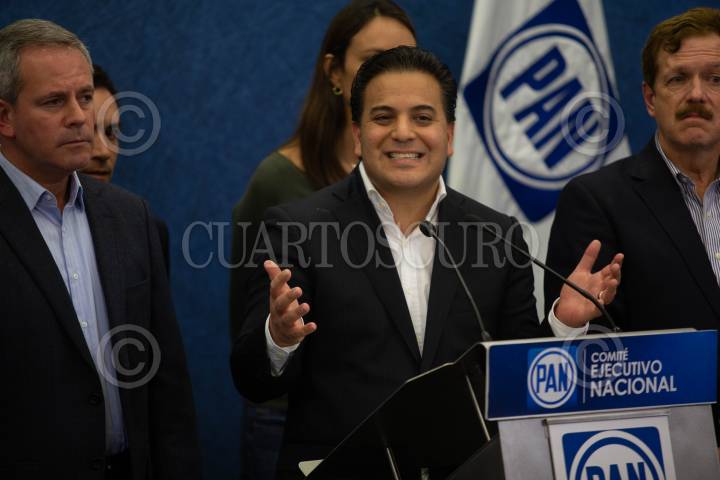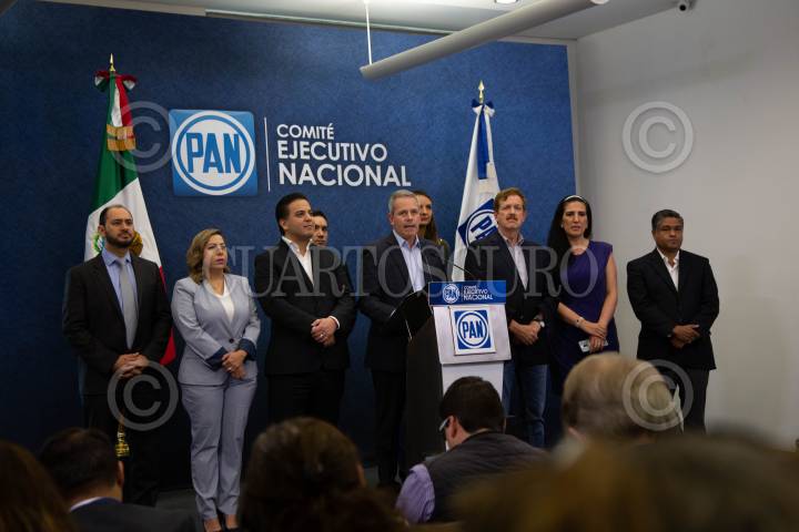 CIUDAD DE MÉXICO, 17OCTUBRE2018.- El Presidente Nacional del Partido Acción Nacional (PAN), Marcelo Torres Cofiño ofreció una rueda de prensa acompañado del senador Damián Zepeda Vidales y el diputado Juan Carlos Romero Hicks; afirmaron que no van a "engordarle el caldo a López Obrador" en torno al tema de la Consulta Ciudadana para la contrucción del Nuevo Aeropuerto Internacional de México (NAIM) ya que les parece una vacilada alejada de toda legalidad por lo que el PAN no votará, dicen, es un tema que debe estar en manos de especialistas. FOTO: ILSE HUESCA /CUARTOSCURO.COM