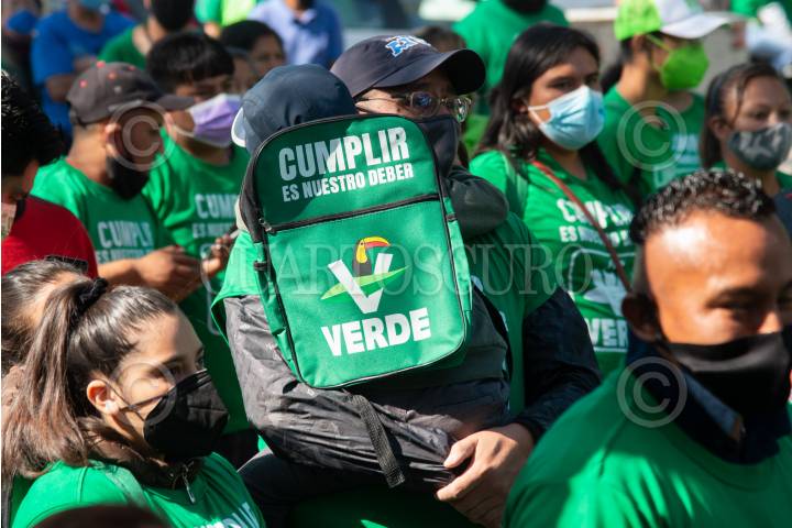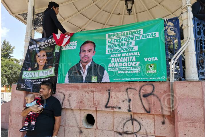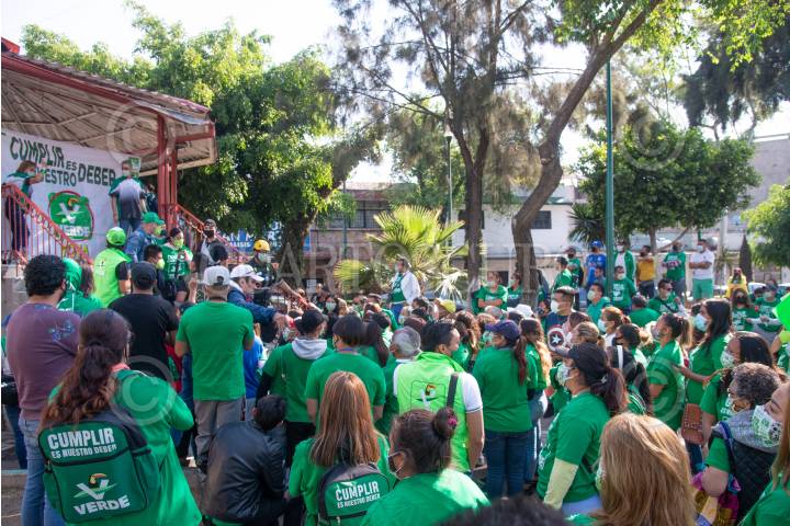 Decenas de simpatizantes del PVEM se reunieron en la Plaza de la Independencia para la realización de un mitin político con motivo de las elecciones.