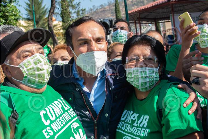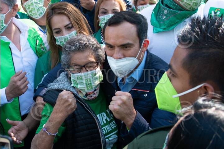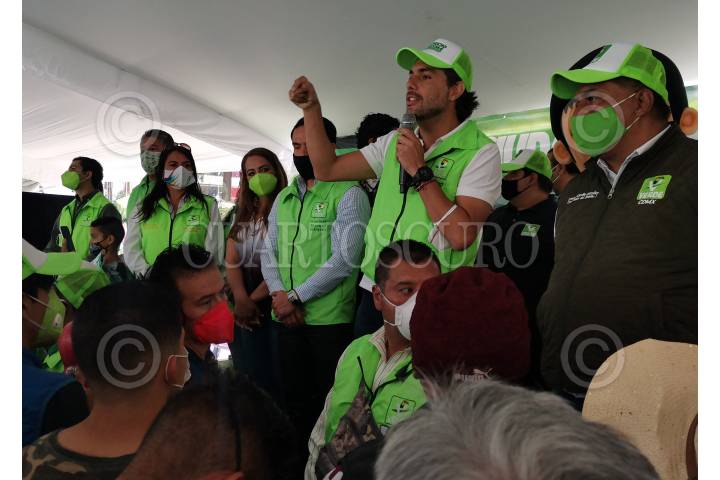 Jesús Sesma, candidato a diputado local por el PVEM, y Juan Manuel Márquez, candidato a diputado federal del PVEM, encabezaron un mitin político en el Parque María Teresa.