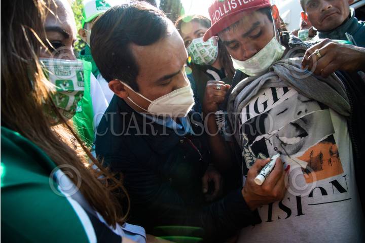 Juan Manuel Márquez, exboxeador y candidato a Diputado federal por el distrito 2 de la alcaldía Gustavo A. Madero, durante el mitin de campaña electoral en las inmediaciones de la colonia Martín Carrera.