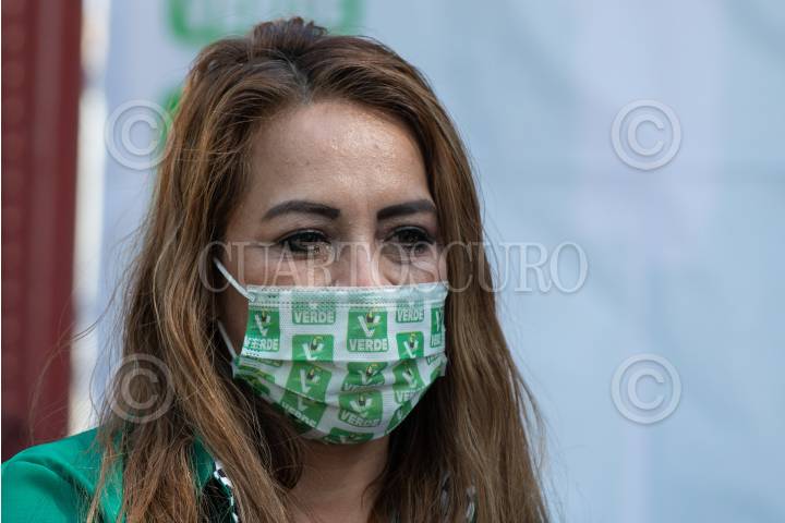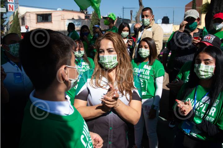 Diana Lorena Gómez Guerrero, candidata a la alcaldía Gustavo A. Madero, durante el mitin de campaña electoral en las inmediaciones de la colonia Martín Carrera.