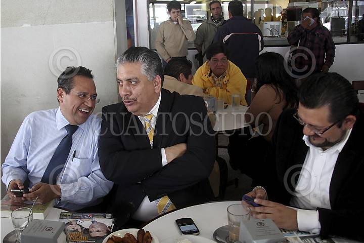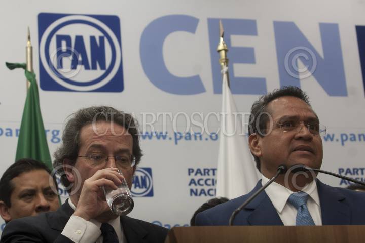 MÉXICO, D.F., 05ABRIL2013.- Juan Manuel Oliva, secretario adjunto del PAN, Vladimir Aguilar, secretario de Planeación del Partido de la Revolución Democrática, y Gerardo Espinoza, dirigente del PRD en Zacatecas, ofrecieron una conferencia de prensa sobre el rechazo del Instituto Electoral del Estado de Zacatecas ante la posibilidad de una alianza electoral entre el PRD y el PAN en aquel estado.. FOTO: MOISÉS PABLO /CUARTOSCURO.COM