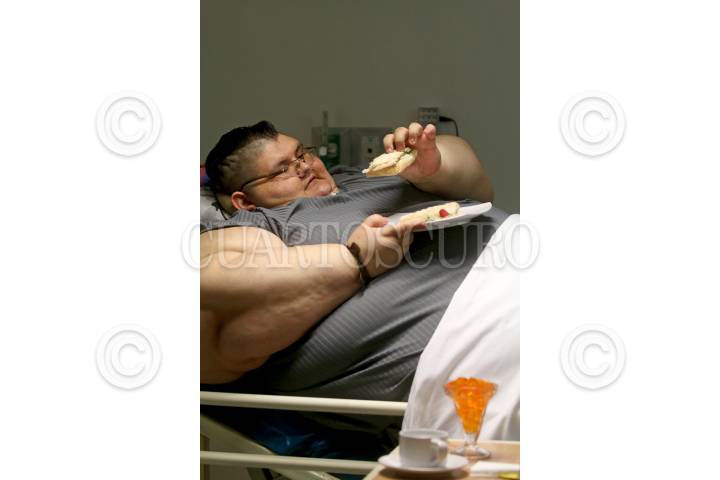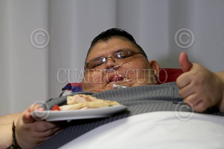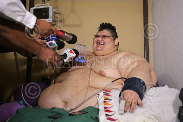 GUADALAJARA, JALISCO. 17MAYO2017.- Juan Pedro Franco de 32 años de edad, considerado el hombre mas obeso del mundo, ofreció declaraciones sobre su primera intervención quirúrgica a la que fue sometido para reducción de peso, a los diversos medios de comunicación que se dieron cita esta mañana en Jardines Hospital de Especialidades. FOTO : FERNANDO CARRANZA GARCIA / CUARTOSCURO.COM