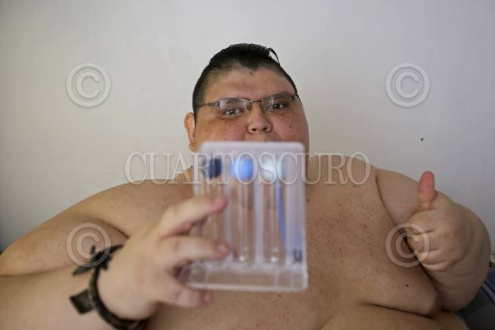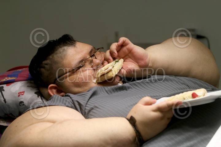GUADALAJARA, JALISCO. 28MARZO2017.- Juan Pedro Franco de 33 años de edad uno de los hombres mas obesos del mundo y el Dr. José A. Castañeda, ofrecieron una conferencia de prensa en la casa donde habita el paciente, para dar a conocer los pormenores del estado de salud actual de Juan Pedro, el cual luego de varias semanas de rigurosa atención multidisciplinaria y de implementar un tratamiento de choque se logro que el paciente redujera 170 kilos por lo que su peso actual es de 420 kilos, lo cual hace mas viable el procedimiento de la cirugía de Pedro. FOTO : FERNANDO CARRANZA GARCIA / CUARTOSCURO.COM