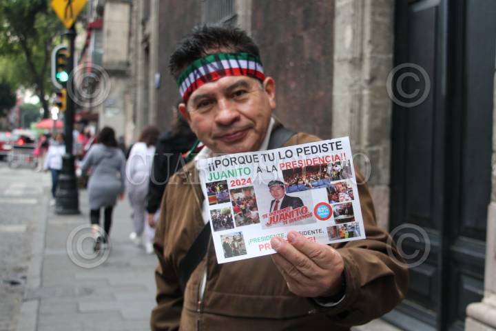 El activista Rafael Ponfilio Acosta Ángeles alias “Juanito” repartió volantes y tarjetas de presentación promoviéndose como candidato presidencial para las elecciones del 2024 en las calles del Centro Histórico