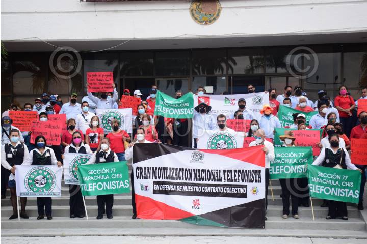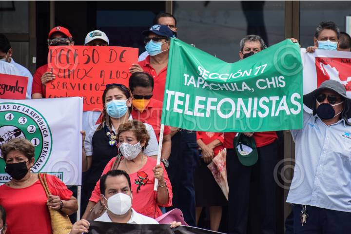 Un aproximado de 60 personas perteneciente del Sindicato de Telefonistas protestaron debido que la empresa TELMEX no está respetando el contrato colectivo.
