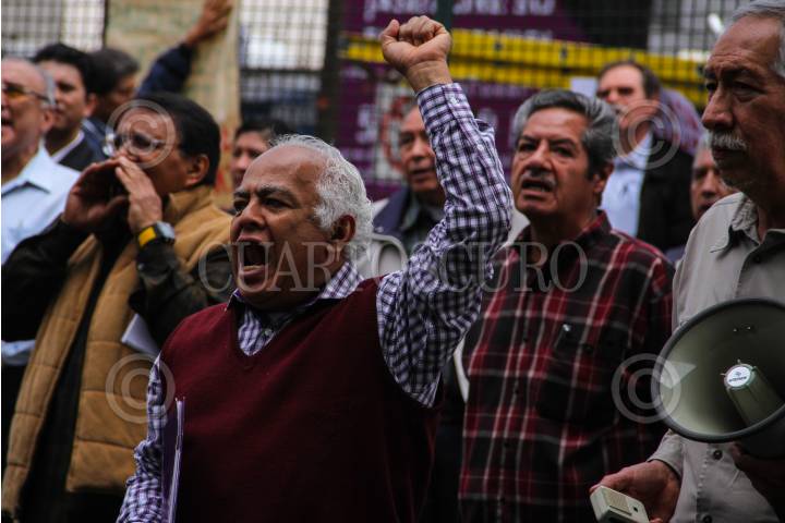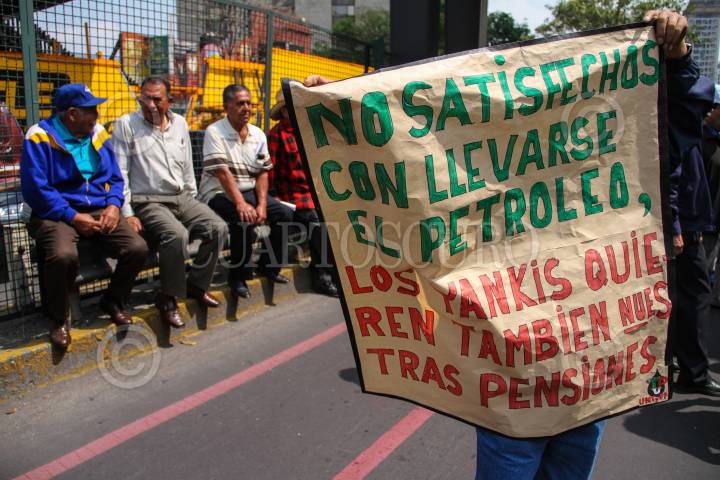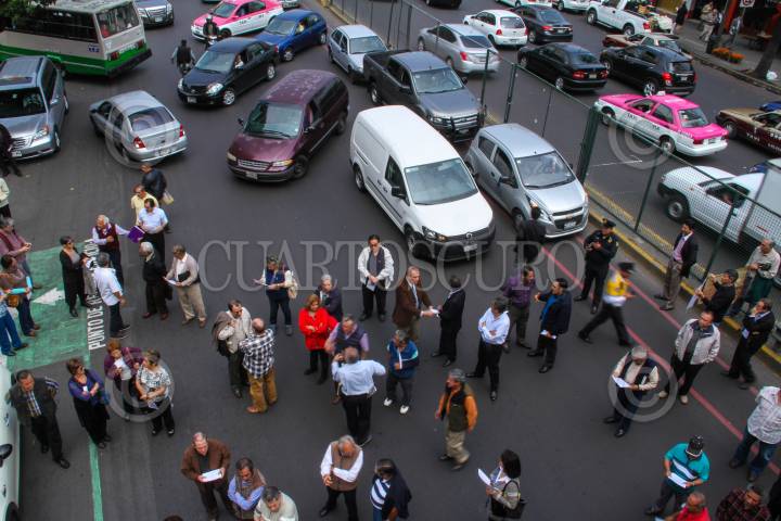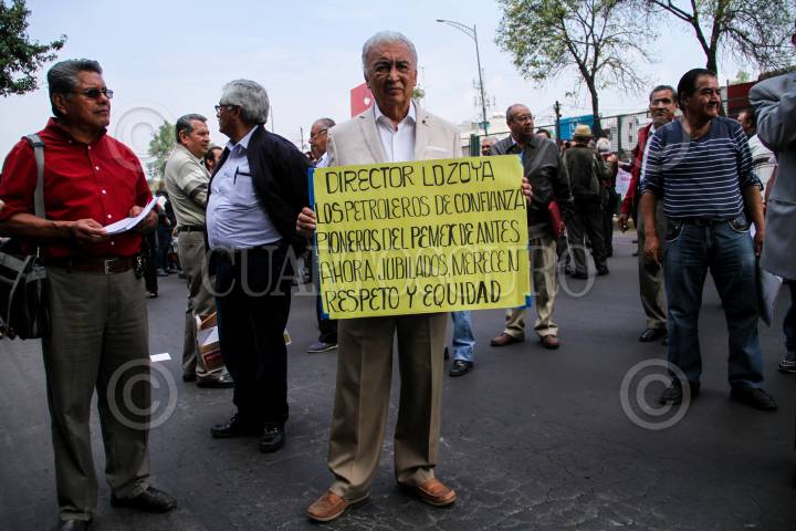 MÉXICO, .D.F, 27OCTUBRE2015.- Jubilados de Petróleos Mexicanos, bloquearon la avenida Marina Nacional, frente al edificio de Pemex, en denuncia a la administración de la paraestatal que pretende afectar la pensión que reciben jubilados y pensionados. La petrolera pretendería reducir el incremento salarial que reciben los pensionados y jubilados. FOTO: ADOLFO VLADIMIR /CUARTOSCURO.COM