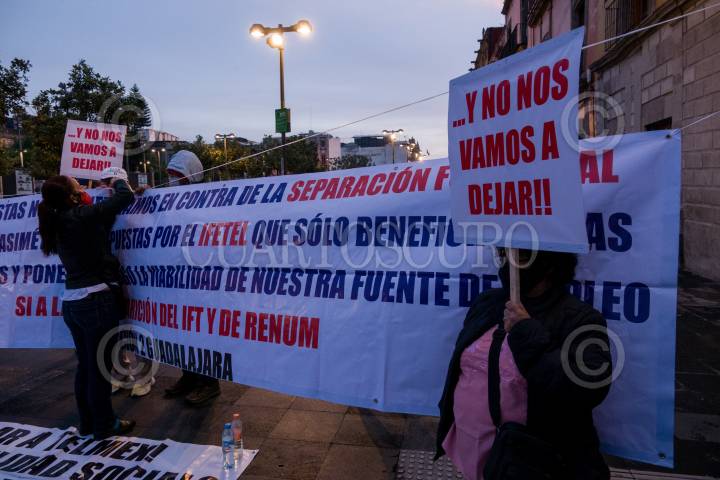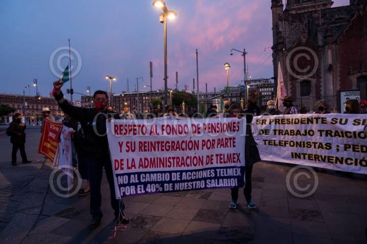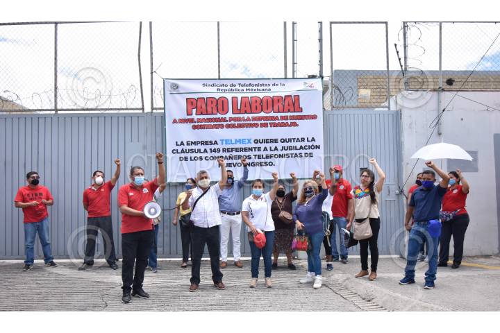 Trabajadores adheridos al Sindicato de Telefonista de la República Mexicana por que supuestamente la empresa de Telmex quieren cancelar la cláusula 149 de jubilación para los trabajadores de nuevo ingreso.