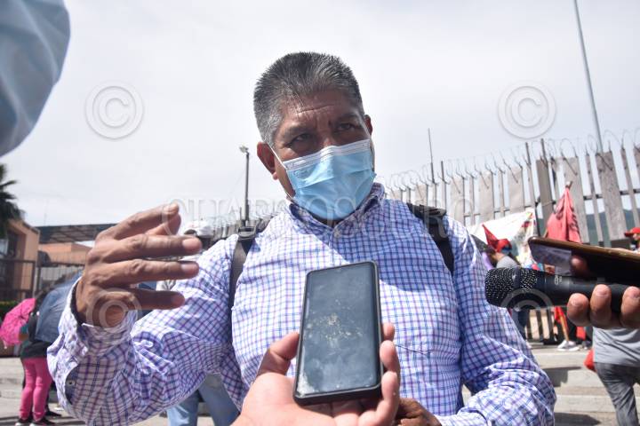 Integrantes de la CETEG se manifestaron en las inmediaciones de la sede del Poder Ejecutivo de Guerrero como parte de sus movilizaciones por la distribución de los recursos del programa de estímulo a jubilados. En la imagen Víctor Bartolo de Cruz.