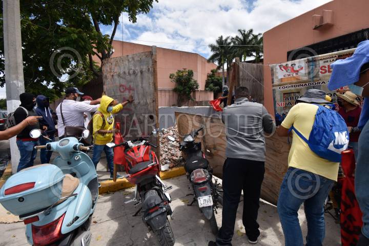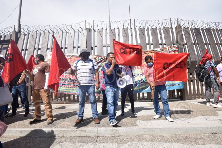 Integrantes de la CETEG se manifestaron en las inmediaciones de la sede del Poder Ejecutivo de Guerrero como parte de sus movilizaciones por la distribución de los recursos del programa de estímulo a jubilados.
