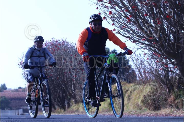 Dos ciclistas recorren la carretera que une a los poblados de Cuecuecuautitla y Juchitepec.