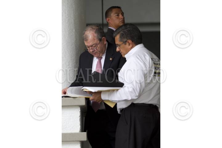 MÉXICO, D.F. 12JUNIO2012.- Meyer Klip Gervitz, Director del Instituto de Verificación Administrativa del DF y Luis Wertman Zaslav, Presidente del Consejo Ciudadano de Seguridad Pública y Procuración de Justicia del Distrito Federal, a su salida de la comida con la Comunidad Judía en el Centro Deportivo Israelita a la que asistió Miguel Ángel Mancera, candidato del Movimiento Progresista a Jefe de Gobierno del Distrito Federal,. FOTO: GUILLERMO PEREA /CUARTOSCURO.COM