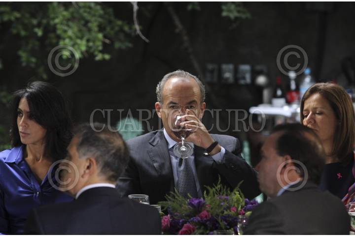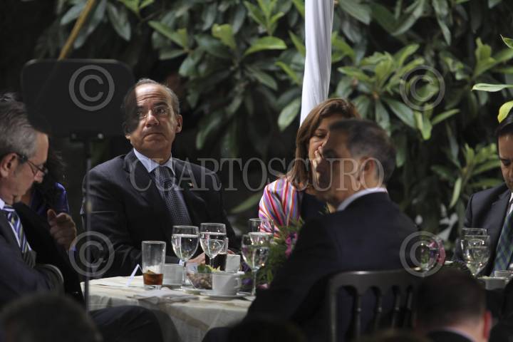 MÉXICO, D.F. 29OCTUBRE2012.- Felipe Calderón Hinojosa, presidente de México, acompañado de su esposa Margarita Zavala y Rafael Zaga, Presidente del Comité Central de la Comunidad Judía, durante la última reunión con la comunidad judía de México realizado en la hondonada de la residencia oficial de los pinos FOTO: SAÚL LÓPEZ /CUARTOSCURO.COM