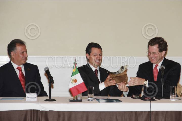MÉXICO, D.F., 13NOVIEMBRE2012.- El Presidente electo de México, Enrique Peña Nieto, se reunió con integrantes del Comité Judío Americano, ante quienes afirmó que la Reforma Laboral recién aprobada es un mensaje positivo para México porque da señales claras de entendimiento entre las distintas fuerzas políticas. Ante miembros del Comité Judío Americano, Enrique Peña Nieto, Presidente electo de México, señaló que los años por venir en México serán de prosperidad y desarrollo, gracias a los niveles de acuerdo y entendimiento que se dan entre las fuerzas políticas que lograron ya la aprobación de la Reforma Laboral. Al reunirse con integrantes del Comité Judío Americano, Enrique Peña Nieto, Presidente electo de México, fue recibido por su director Ejecutivo, David Harris y por Rafael Zaga Kalach, presidente del Comité Central de la Comunidad Judía de México. FOTO: OFICINA DE PRENSA DE EPN/CUARTOSCURO.COM