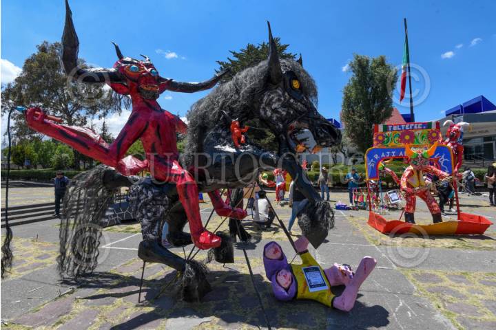 TOLUCA, ESTADO DE MÉXICO, 09ABRIL2025.- Artesanos de diversos municipios se dieron cita este día en la edición 32 del Concurso de Judas Monumentales en el Centro Cultural Mexiquense, este año se registraron 58 piezas con diversas temáticas sociales, con el carrizo y papel, los artesanos buscan con cada una de sus piezas representa el mal, anteriormente estas piezas era quemadas el Sábado de Gloria en Semana Santa. FOTO: CRISANTA ESPINOSA AGUILAR /CUARTOSCURO.COM