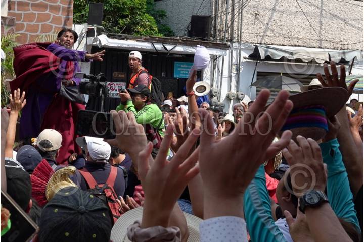 CIUDAD DE MÉXICO 18ABRIL2025.- Miles de personas provenientes de todo el país y diversas partes del mundo, asistieron a la 182 representación del Viacrucis en calles de la alcaldía Iztapalapa FOTO: ROGELIO MORALES CUARTOSCURO.COM