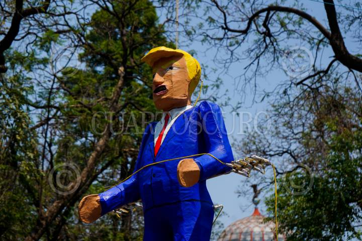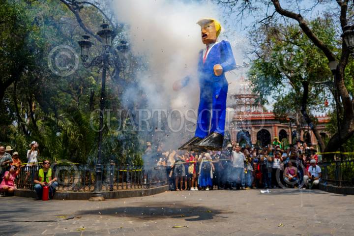 CIUDAD DE MÉXICO, 19ABRIL2025.- En el marco del Sábado de Gloria, Un judas del presidente estadounidense Donald Trump fue quemado en la tradicional Quema del Judas que el colectivo Cartoneros de la Ciudad de México realizó con motivo del octavo festival de la cartonería en el Kiosco Morisco de la alcaldía Cuauhtémoc. FOTO: GALO CAÑAS/CUARTOSCURO.COM