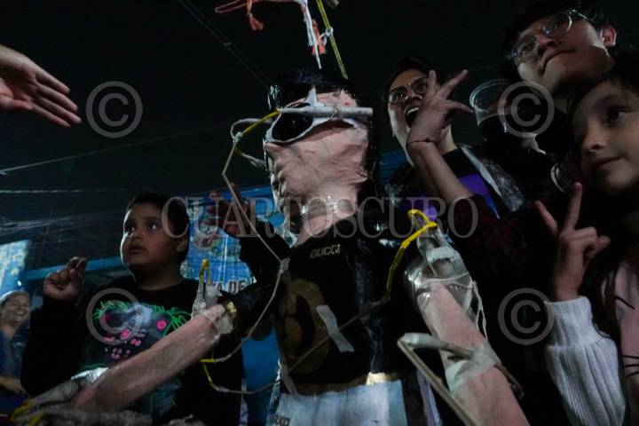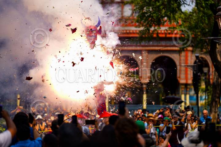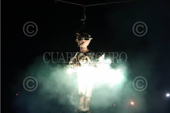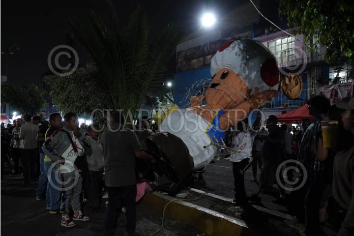 SAN LUIS POTOSÍ, SAN LUIS POTOS, 20ABRIL2025.- Los judas se prendieron en la noche de este sábado donde participaron 36 participantes en la Plaza del Carmen, acudieron visitantes y potosinos. FOTO: MARCELO PALACIOS/CUARTOSCURO.COM