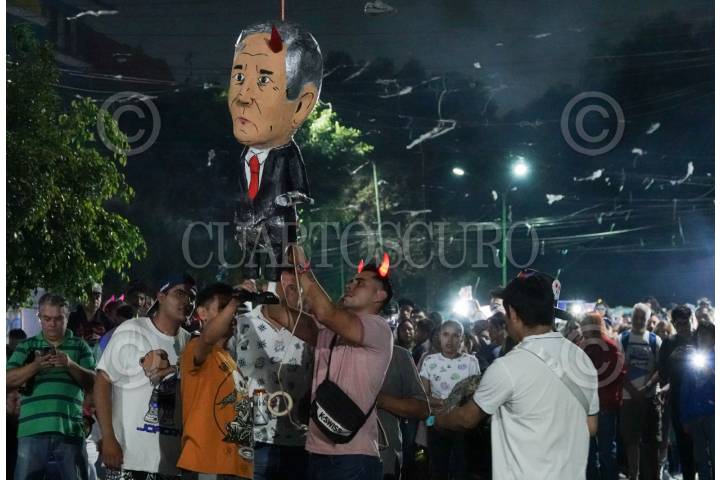 CIUDAD DE MÉXICO, 30MARZO2024.- El presidente Andrés Manuel López Obrador y la candidata a la presidencia Xóchitl Gálvez fueron algunos de los personajes que explotaron durante la tradicional quema de Judas en la colonia Merced. FOTO: GALO CAÑAS/CUARTOSCURO.COM