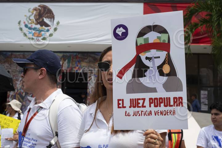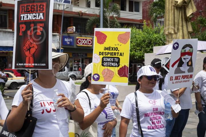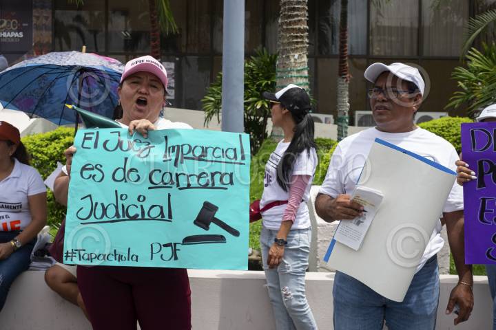 TAPACHULA, CHIAPAS, 23SEPTIEMBRE2024.- Trabajadores del Poder Judicial de la Federación realizaron una manifestación en las inmediación del Palacio Municipal expresando su posición en contra de la Reforma Judicial propuesta por el gobierno federal. FOTO: ISABEL MATEOS/CUARTOSCURO.COM