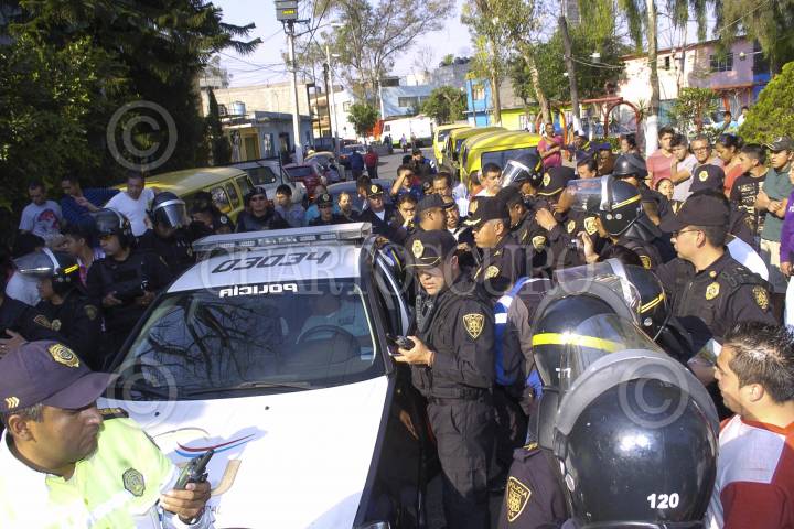 MÉXICO, D.F. 27ENERO2013- Dos elementos de la policía de investigación, fueron asegurados por elementos de la policía capitalina, luego de que vecinos de la colonia Panamericana los lincharían presuntamente por ingresar a un domicilio de manera ilegal de donde sustrajeron varios artículos de valor. Los detenidos fueron trasladados a la Agencia 50 del MP a la Fiscalia especializada de Servidores Publicos. FOTO: LUIS CARBAYO / CUARTOSCURO.COM