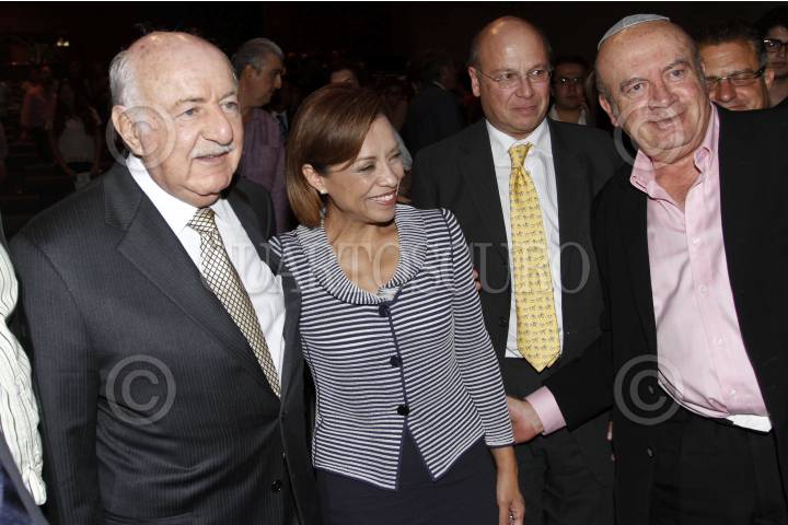 MÉXICO, D.F., 01JUNIO2012.- Josefina Vázquez Mota, candidata a la Presidencia de la República por el PAN, se reunió con miembros de la comunidad judía en el Colegio Montes Sinaí, en la delegación Cuajimalpa. En la imagen, con Alfredo Achar Tussie, presidente de Grupo Comex. FOTO: ISAAC ESQUIVEL /CUARTOSCURO.COM