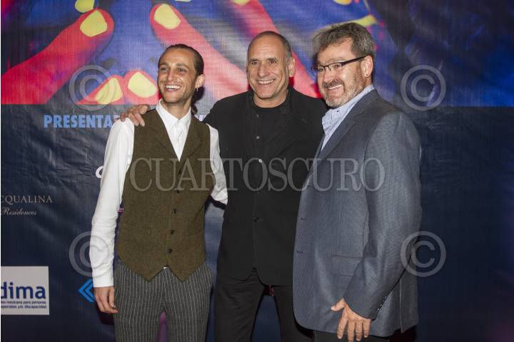 CIUDAD DE MÉXICO, 17ENERO2017.- Isidoro Hamui, director del 14o Festival Internacional de Cine Judío en México, el músico invitado David Broza, y Mark Liwerant Bokser, presidente del consejo directivo del festival, durante la alfombra roja de inauguración del festín cinematográfico. FOTO: ISAAC ESQUIVEL /CUARTOSCURO.COM