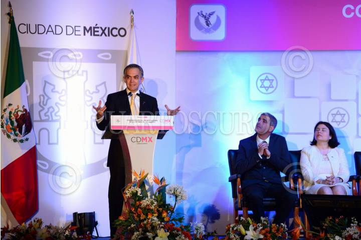 MÉXICO, D.F., 27ENERO2016.- Hace diez años la Organización de las Naciones Unidas nombró este día como el Día Internacional del Holocausto, en conmemoración el jefe de gobierno Miguel Ángel Mancera asistió a una ceremonia en el Colegio Israelita de México. En su discurso el jefe de gobierno dio un mensaje recordando el corte del suministro que se llevará a cabo este fin de semana y afectará a 14 delegaciones en la ciudad. FOTO: ISABEL MATEOS /CUARTOSCURO.COM