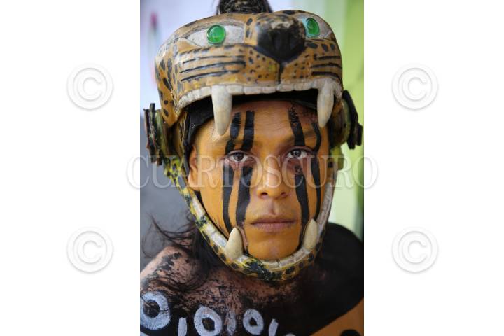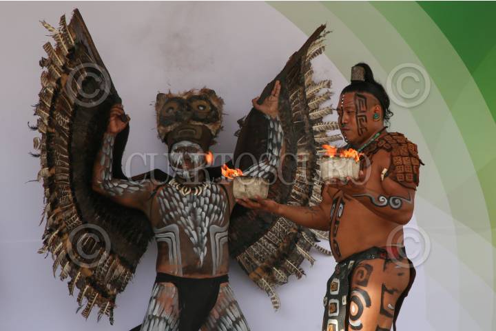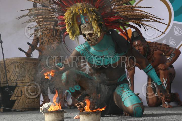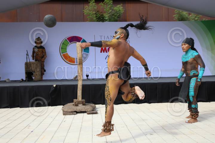 Un grupo de jóvenes Mayas realizó una representación del Juego de Pelota “Pok ta Pok” en el Centro de Convenciones Yucatán Siglo XXI durante la clausura de la 45 edición del Tianguis Turístico México 2021